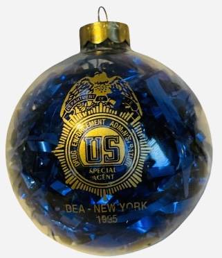 Clear Glass with goldstone-embossed badge of "DEPARTMENT OF (stat)E / some of gold print worn off