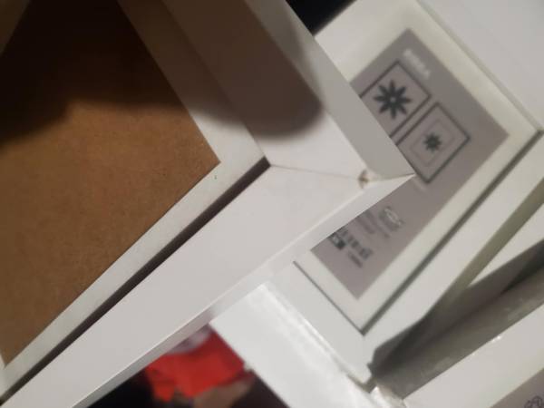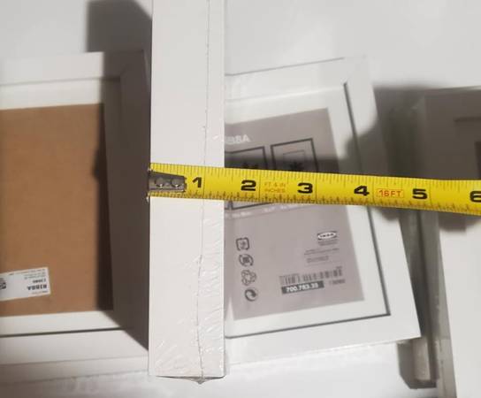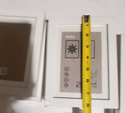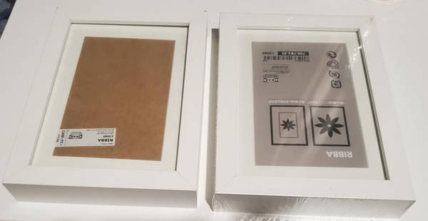 Six white Ikea Ribba Picture frames available - 5 BRAND NEW IN PACKAGING, 1 out of packaging and slight scuff on corner 6" x 8" x 1.5" 5"x 7" display without mat 3.5" x 5.5" with mat Five are brand...