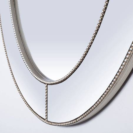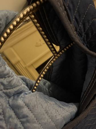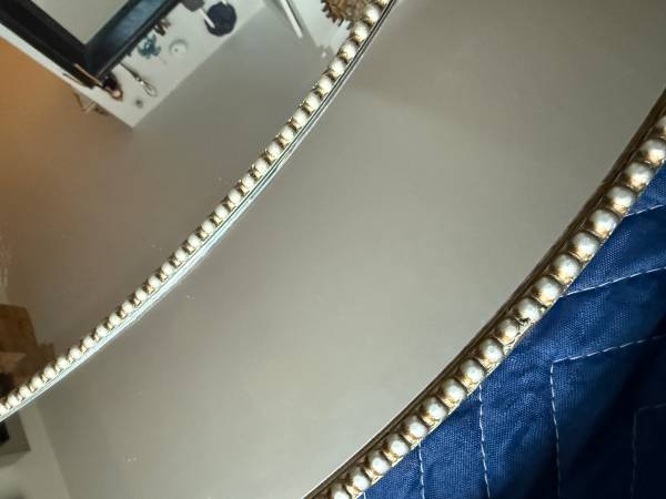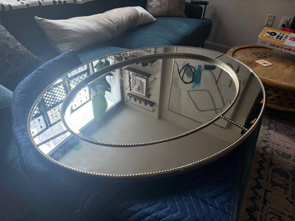 I have x2 beautiful Designer Mirrored Frame Mirrors with beaded wooden nailhead detail $200 ea. 1. Oval: 30"x40"oval (currently wired to hang horizontal but has D rings to be rewired to hang...