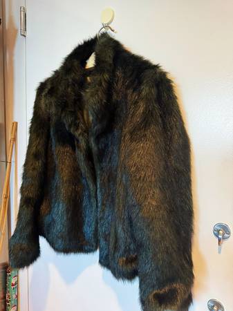 One of our favorite ways to make a statement: this luxe, faux-fur layer with a relaxed shape and a pillowy collar that you can wear up around your neck or folded down. 100% polyester. Standing...