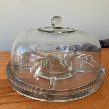 Glass vegetable party display crudite dish with cover lid sections Sectional. Outside outdoor dining patio picnic bbq holiday. Cash only. Pick up only. Midtown West.