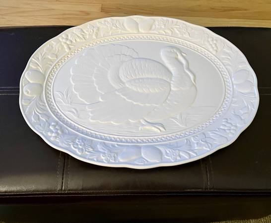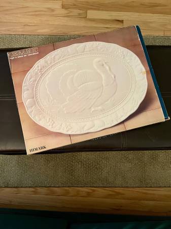 Vintage (1985) Glazed ceramic Turkey Serving Platter w/raised design. Perfect for family get-togethers or holiday entertaining. Versatile Excellent Used Condition in original box