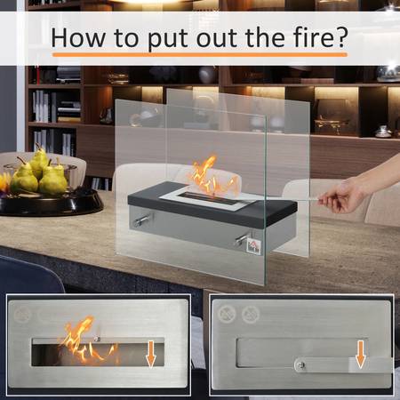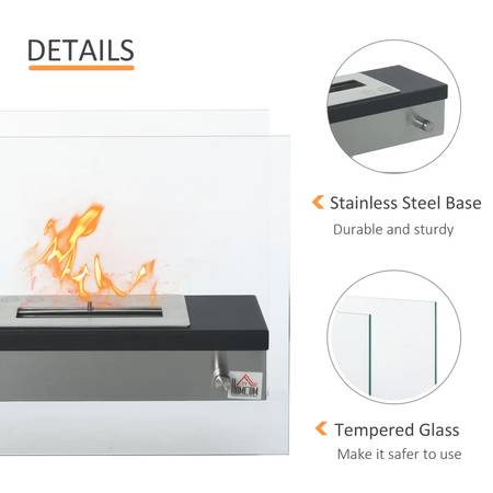 The attractive flame with no ash or smoke will create a romantic atmosphere for you. Using clean ethanol fuel, this ventless glass fireplace emits no harmful smoke or smell so a ventilation system is not required. After the burner box is full, it can hold 1.5 l of ethanol fuel and can provide a flame that can burn for up to 3-hours. Update your fireplace today.