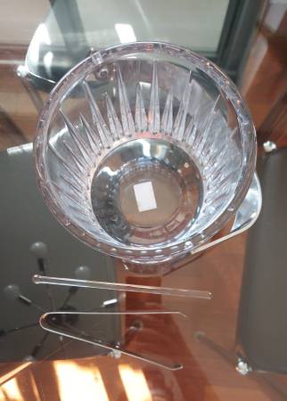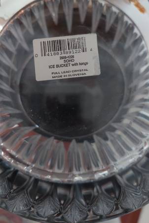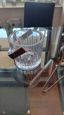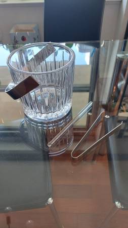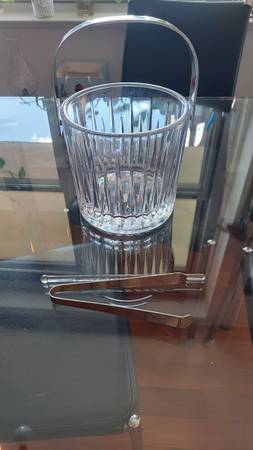 Homemade crystal stainless Soho Ice Bucket champagne wine chiller. Stainless Steel Ice Tongs. 6 inches high x 6 inches wide. Never Used. See pictures.