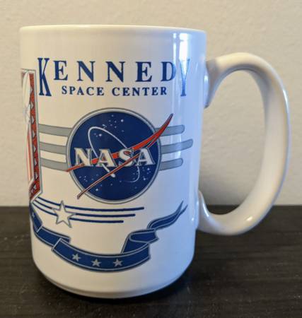 Bought on my last Florida trip at the Kennedy Space Center a few years back. Kept on display and never used. Tall ceramic mug: - 3.25 inch diameter - 4.75 inches tall
