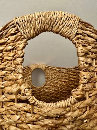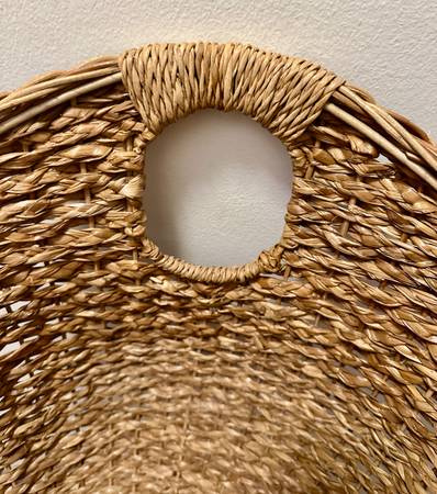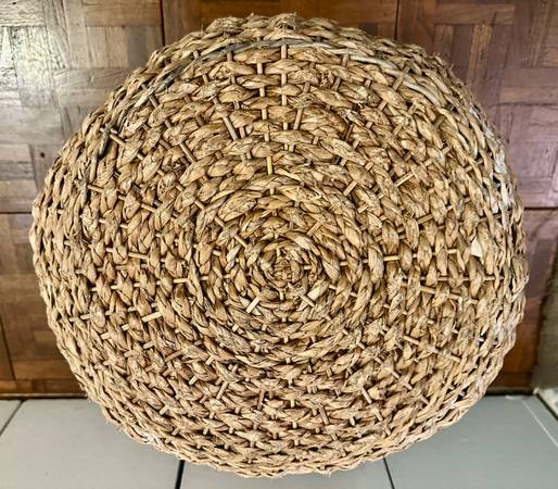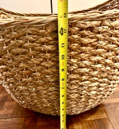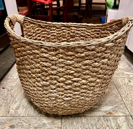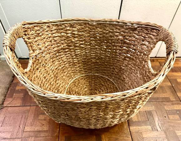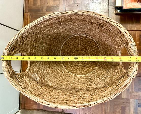 I've seen this called a Market basket, a Boat basket, a Storage basket. It's woven (or braided) seagrass, sturdy, in good condition, great for laundry, shoes, your cat bed, stuff. It's really great for storing stuff. Good condition. Sturdy handles. Handsome look. 20" x 15' x 13". Don't know what seagrass is? Neither do I. That's what the internet is for. Haha.