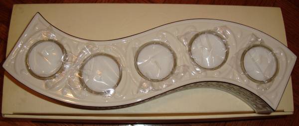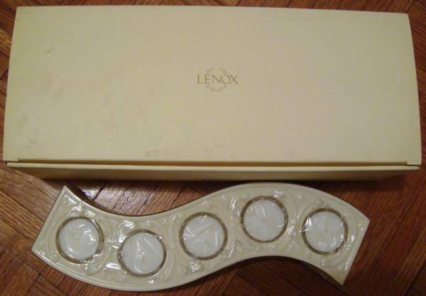 Lenox Votive candle holder --- $15 Cash Only Never used - mint, still in box. S-shaped tea light votive centerpiece. Crafted of Lenox ivory fine china accented with 24 karat gold Includes 5 tea...