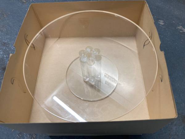 Beautiful simple lines will not distract and will show off your baking and decorating skills. A substantial piece, it measures 12" in diameter, 5" high.