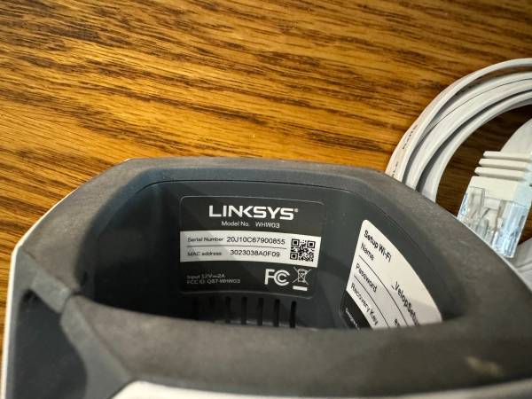 Linksys Velop WHW03 Mesh Router Gently used. Purchased it for our house but we ended up moving to an apartment and did not need this anymore.