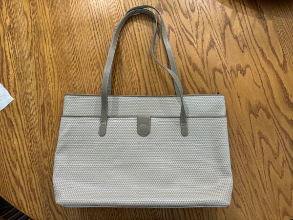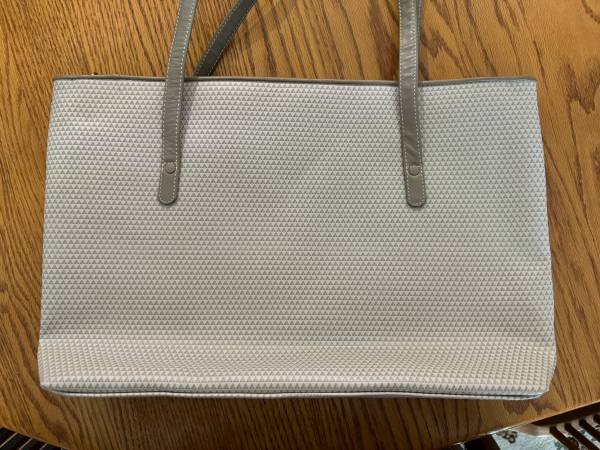 Liz Claiborne Handbag with Leather Trim Dimensions: Width: 18" Height: 11" Depth: 4"