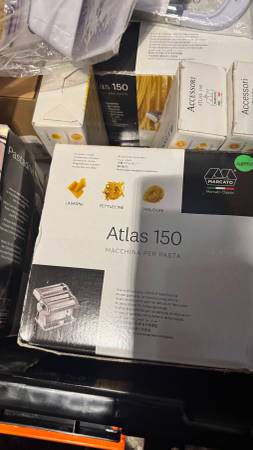 This listing is for a complete, brand-new pasta & dough-making bundle built around the premium Marcato Atlas 150 pasta machine and Pastadrive motor. All items are unused and many are still sealed in original packaging.