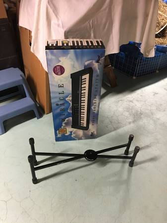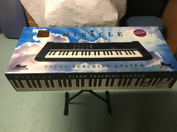 Works with Macintosh, comes with stand Great condition Original box, with power adapter Keyboard can be played without computer hookup No software available