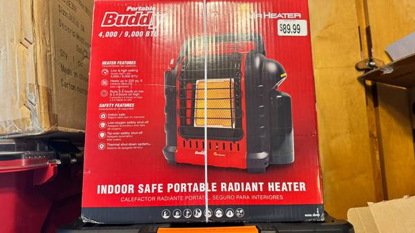Selling a brand new, never-used Mr. Heater Portable Buddy indoor-safe radiant heater. Perfect for emergency heating, camping, power outages, garages, workshops, cabins, and apartments.