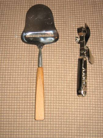 It is a U.S. made Utica Super Edge Utensil set, which comes in a handy felt-lined, plaid case with an easy carrying handle.