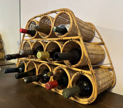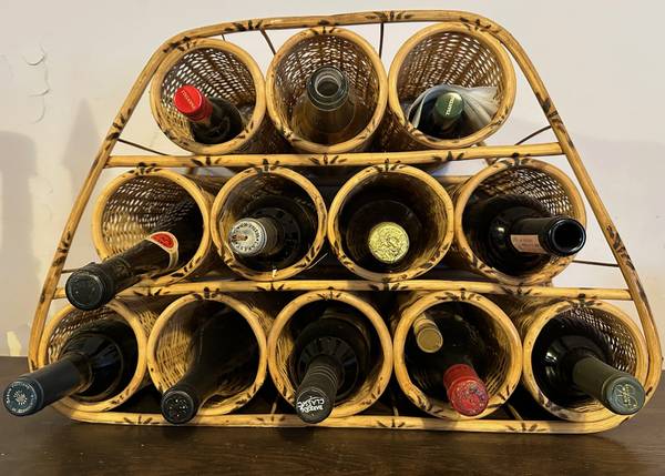*** Also selling a beautiful BOHO wicker/rattan wine rack holds 12 bottles of wine or liquor... excellent condition.... see pics: $50