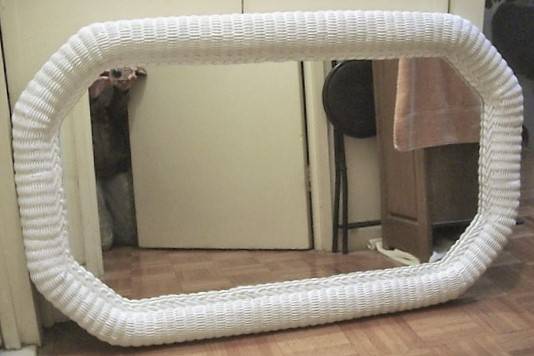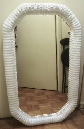 Octagon Wall Mirror $20 Cash Only Weave Pattern Polyethylene Frame Heavy weight mirror is free of any chips or cracks. Can hang horizontal or vertical. Measurements: 26 - 3/4” X 44”
