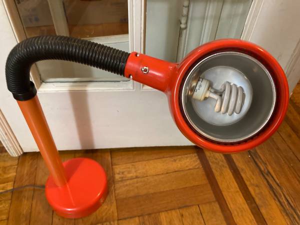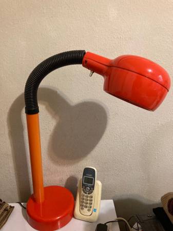 Pair of Orange Lamps by Fagerhult, MCM Swedish Goosneck Table Lights...