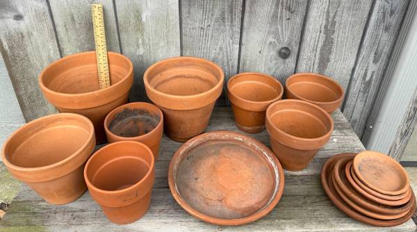 -A collection of quality terracotta planters in assorted sizes. Sold individually or take all for $150.