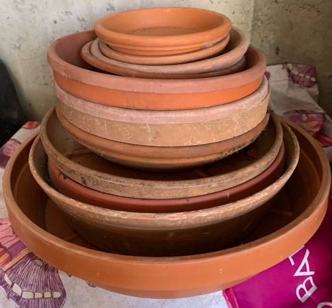 - A collection miscellaneous sized terracotta saucers, made in Italy, (and some plastic saucers). Take all for $45