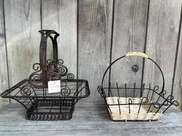 -(3) Metal baskets to hold plants. Two are all metal. One has a rattan base. Each: $ 20. All 3 for $ 45.