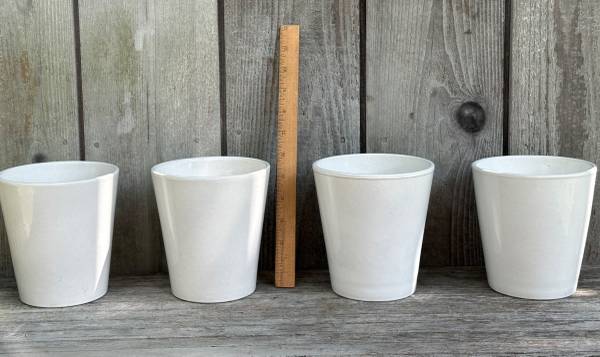-(4) cream colored ceramic planters. 5.5” high. Each $10. All 4 for $ 35.