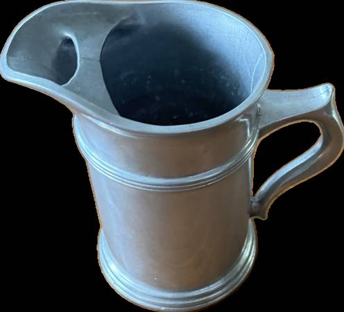 - Antique 1800’s pewter pitcher. 8‘ Tall: $65.