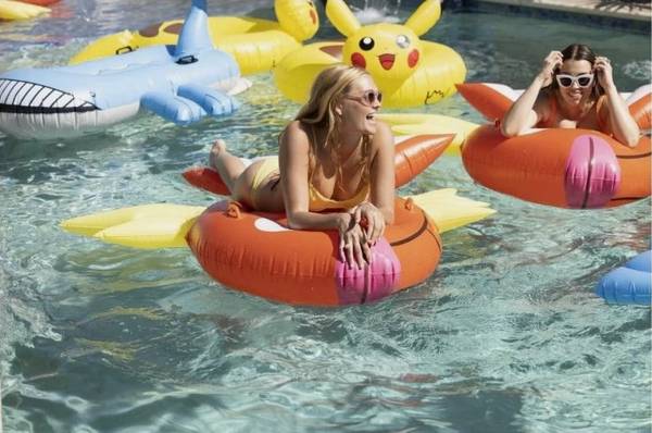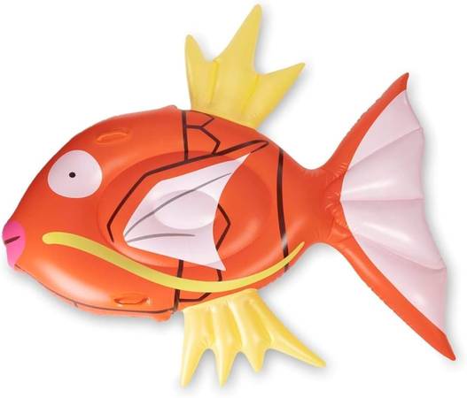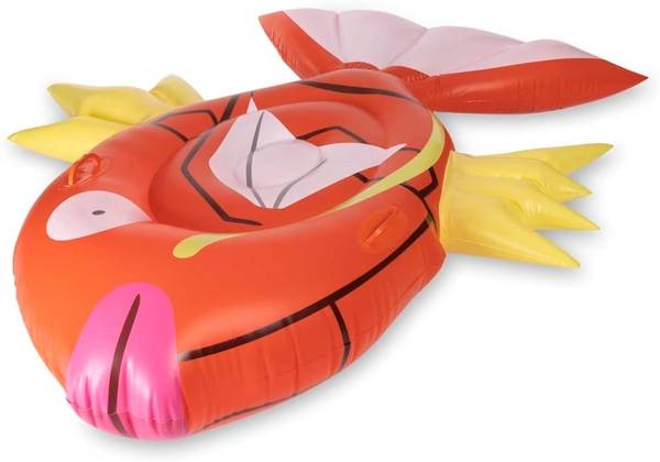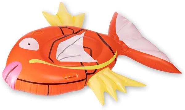 ear up for an awesome aquatic adventure while riding on top of a noble, powerful Pokémon of the rivers, lakes, and seas—we mean Magikarp, of course! With its big fins and round body, this brightly colored, inflatable float is sure to stand out at the pool or the beach.