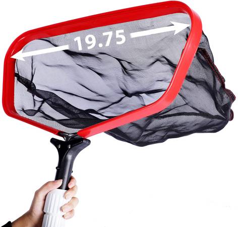 Pool Skimmer Net Leaf Rake with Durable 19” Fine Mesh Deep Bag, 19.7” Wide Inner Aluminum Frame, Pond Skimmer Net Cleaning Kit for Above Ground Swimming Pools Hot Tubs Spa (19.7", Red)