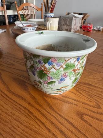 Porcelain Planter Pot with Flower Patterns Height: 7" Diameter: 8"