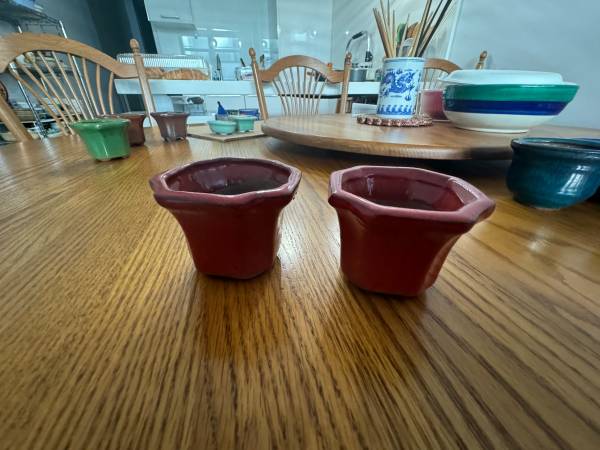 2 Red Square Planter Pots with Drain Holes Dimensions: Width: 3 1/4" Height: 2 1/2"