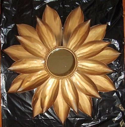 Round Wall Mirror surrounded by Gold Metal Leaves - household items...