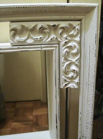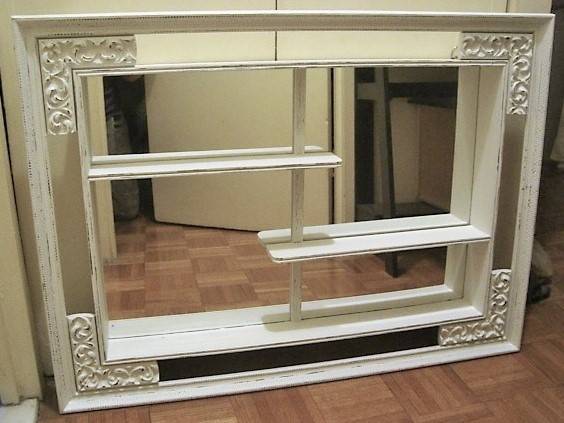 Shadow Box Display with Mirror and Shelves $35 Cash Only Mirrored shadow box with 2 half shelves and one full shelf Textured outer frame with carved relief inner corners Solid Wood with a soft...