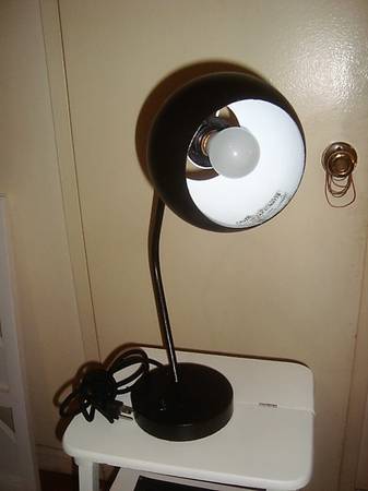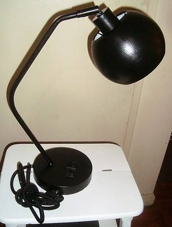 Space Age Design Eyeball Lamp $85 Cash Only Features: AC outlet built into base for easy access On / Off rocker switch on the base. Bent neck with a swivel shade so you can direct the light where...