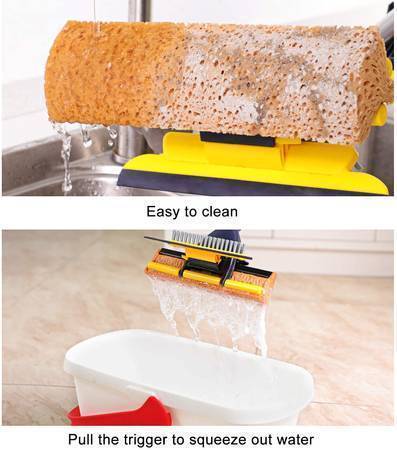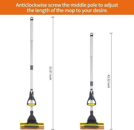 Sponge Mop Home Commercial Use Tile Floor Bathroom Garage Cleaning with Squeegee and Extendable Telescopic Long Handle 41-53 Inches.