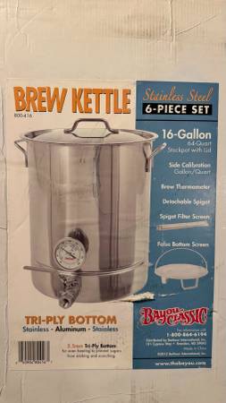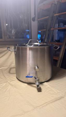 Heavy-duty stainless brew kettle with built-in ball valve for clean, easy transfers. Great for homebrewing, stock making, or large-batch cooking. Includes lid and handles. Clean and in great shape โ ready to use.
