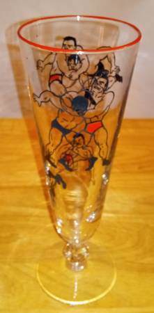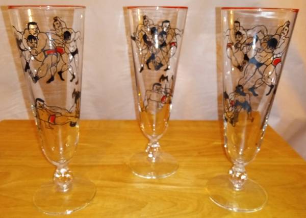 THREE Rare 1950s Wrestling Pilsner Beer Glasses - household items -...