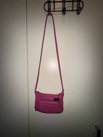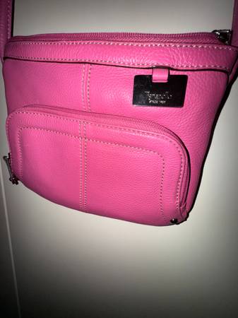 Tignanello Coral Pink Leather Handbag, New 23 Inch Strap Width: 9 inches Height: 7 inches