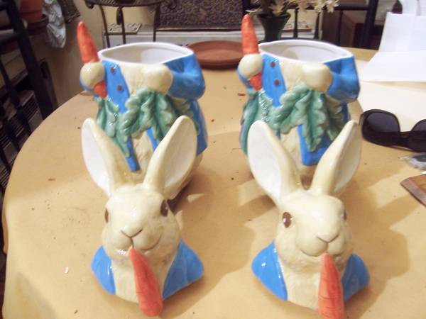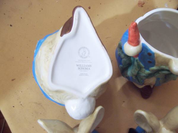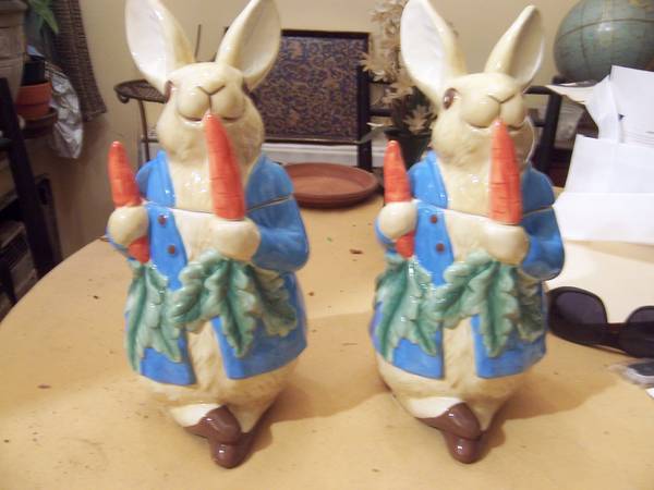 Two William Somona Peter Rabbit cookie jars. Never used. Clean. No scratches or nicks. Apparently, these cookie jars are no longer available. $50.00 each or best offer. Email me your telephone...