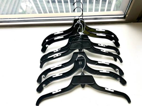 Useful plastic multifunctional hangers by Uniplast industries. Swivel. Pack of 8. Black color.