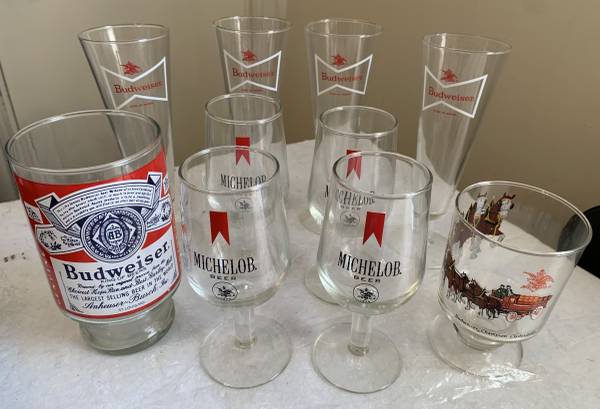 vintage 1970s Budweiser / Michelob Beer Glasses ($80) --------------------------------------------------------------------- - 1 (one) 32oz Budweiser Lager King Beers Large Footed Drinking Glass - 1...