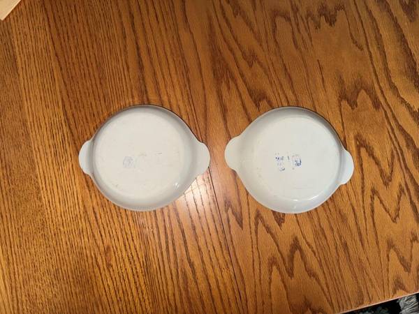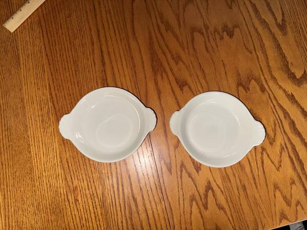 Vintage 2 Ceramic Plates with Handles Made in the USA Dimensions: Ear to Ear: 7 1/4" Diameter: 6" Height: 1"
