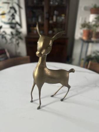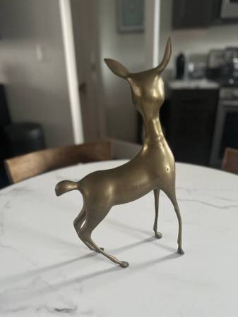 Full brass metal, with a little bit of patina. Approximately 16 inches tall and 9 inches wide.