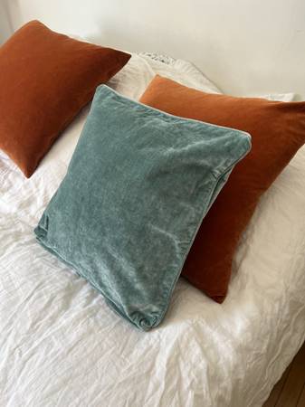 Vintage Ice Blue Velvet Pillow Cushion Cover Zipped Cover (insert not included) Measures 20 inches by 20 inches in very good pre own condition