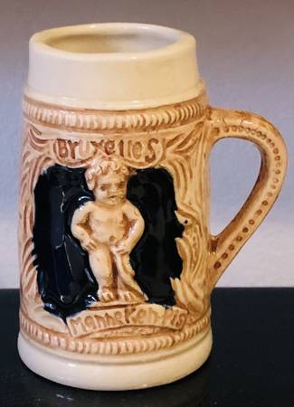 Ceramic Painted Vintage Manneken Pis-Hotel de Ville Bruxelles Miniature Stein