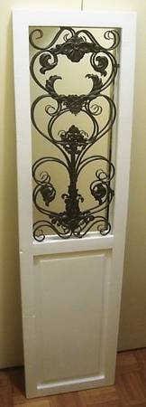 Wood and Mirror Wall Décor with Metal Overlay $30 Cash Only Upper half Decorative Scroll and Floral design set over a mirror Lower half white wood panel Create an artful focal point in any room, on...