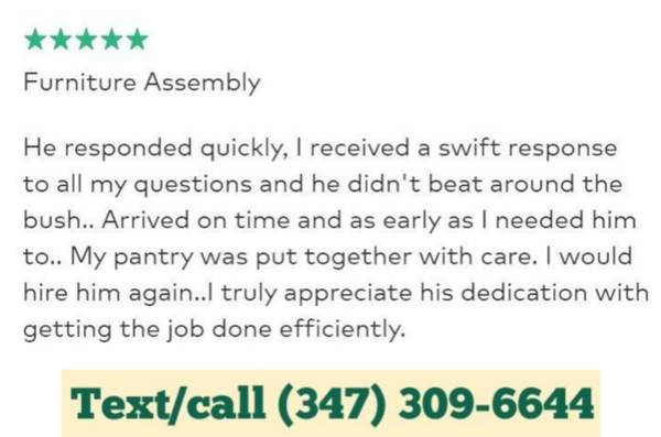 Hi, I can help you set up IKEA, Wayfair, Amazon-type furniture quickly. I am a handyman experienced in assembling hundreds of furniture items including dressers, beds, desks, shelves (including wall-mounting) and wardrobes. Photos above are some of the furniture I've assembled.