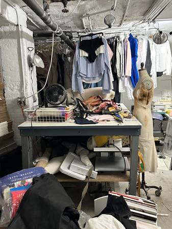 Very beloved cutting table, has served me well for years. Does not come with the self healing mat. Particleboard shelf and table top, disassembles easily with a wrench. Very sad to let this go, but my new space won’t accommodate. Sorry about the mess, I’m packing for the move.