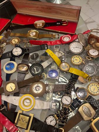 Have here a collection of 1970s Swiss Made Mechanical watches. Makes: Lausanne. Lucerne. CustOmtime. Endura. Mount Royal. And many others. All working. Perfect for the collector. Excellent find. Asking $375 for all 97 watches. Call or text Nicky show contact info