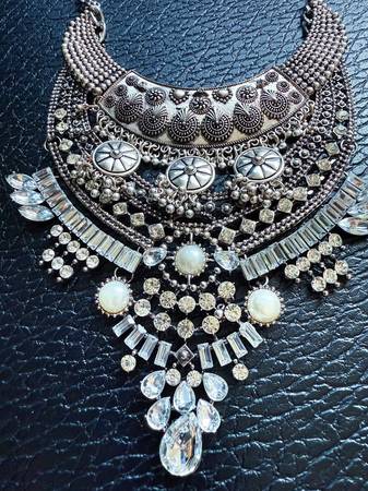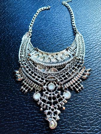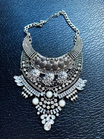 Calypso Maxi Statement Necklace is a big, glamorous necklace. Perfect for parties and music festivals, or when you want to dress up with a bohemian flair! This necklace features intricately designs of gems and layers of chains for maximum eye-grabbing impact!