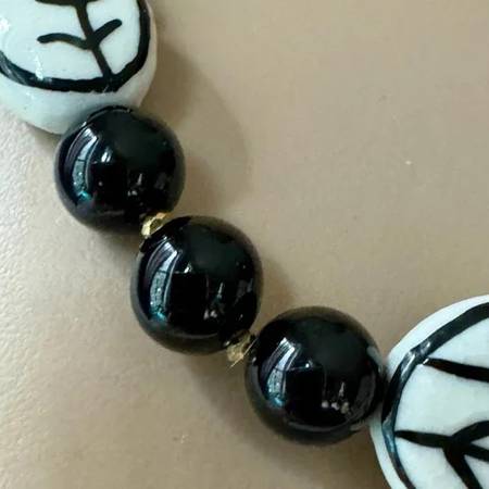 Handmade item: A black porcelain and onyx necklace 18" long, 8mm beads. ------------------------------------------------------------------------------------------------------------------------------